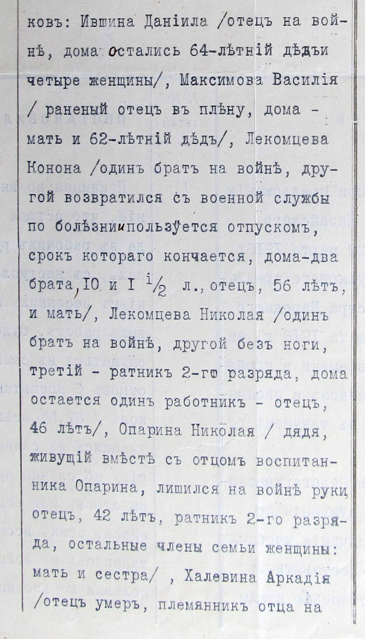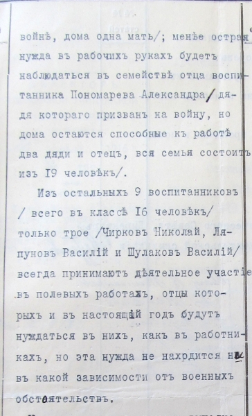 Фрагмент доклада на Ученом совете учительской семинарии о семейном положении учащихся. Глазов, 1916 г. Бурная общественно-политическая история страны отразилась на взрослении этих приехавших из деревень парней. Они становились большевиками, первыми комсомольцами, сражались на фронтах Гражданской войны, участвовали в национальном движении, создании автономии Удмуртии.